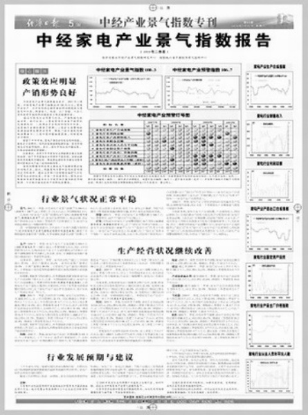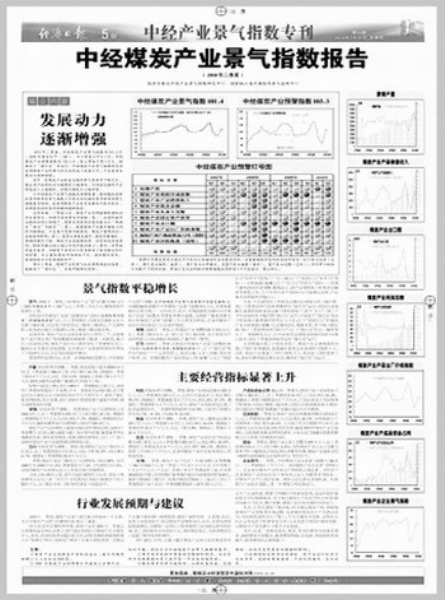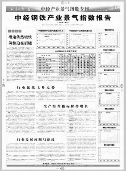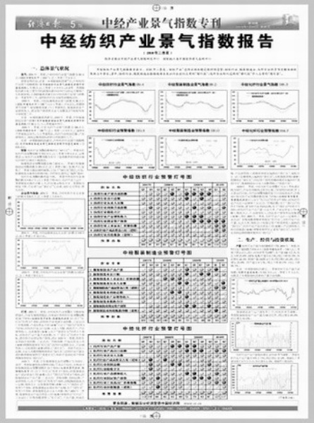 经济日报刊发的“中经产业景气指数专刊”用数据和图表相结合的形式,监测了装备制造业、钢铁、水泥、煤炭等重点行业的运行状况,并对行业发展趋势进行预测。我个人认为,经过不断地改进和完善,中经产业景气指数已成为反映我国产业经济动向的重要辅助监测工具,为经济界进行产业经济研究提供了较好的材料。
