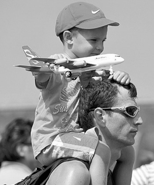 为期2天的匈牙利第11届国际航展在匈牙利中部的凯奇凯梅特市开幕,来自22个国家的飞机参加这次航展。图为一位父亲带着孩子前来参观。 新华社发
