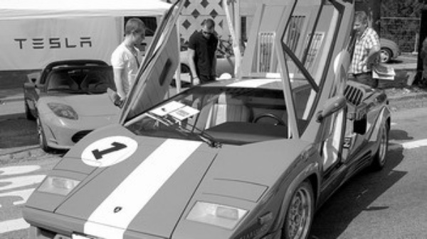 丹麦最大规模的汽车赛事————哥本哈根老爷车大奖赛在哥本哈根费乐公园赛车中心举行,近百辆老爷车参加了比赛。此外,活动主办方还组织了包括法拉利、兰博基尼等在内的众多知名跑车车队秀和展览。图为观众在参观一辆老式兰博基尼跑车。 新华社发