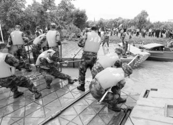完成了松花江上打捞化学原料桶战役,又迎来了另一场战斗。7月31日,桦甸市12艘采金船被洪水冲入第二松花江,威胁丰满大坝的安全,需要立即拦截。吉林省经与专家会商,果断采取三项措施拦截:设卡,拖走,切割沉船,一场危机迅速化解。