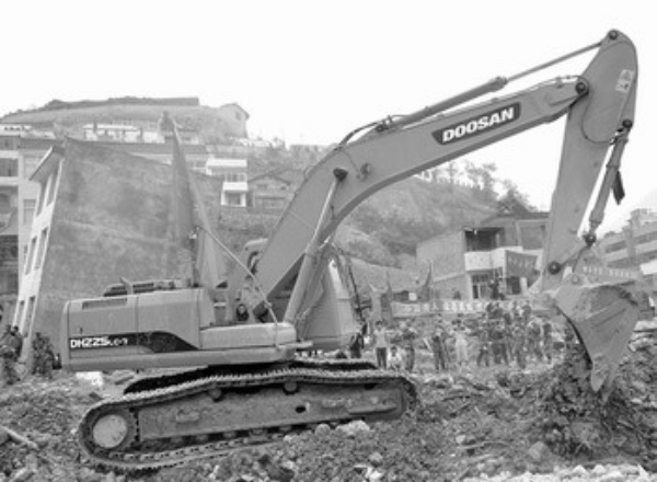 “这里可能还有群众被困在下面,尽管生还希望很小,但我们还是要尽最大努力寻找。”兰州军区某防化团政委张贵泉指着不远处一片坍塌的废墟说。