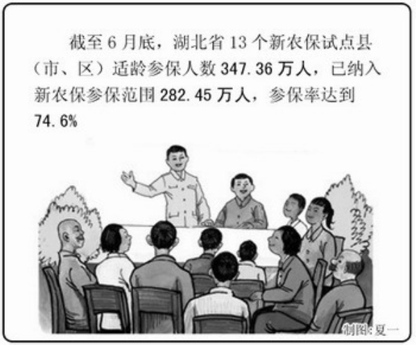 “国家政策好,出台‘新农保’;财政来补贴,不用养儿能防老”,这段湖北民间的三棒鼓唱词,唱出了当地农民对“新农保”的期盼和满足。