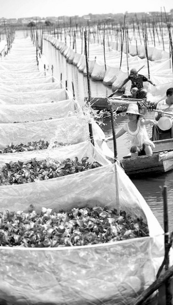 8月13日,南昌县向塘镇黄山村村民在给网箱养殖的黄鳝喂饵料。近年来,江西省南昌县大力推广网箱养鳝、鱼虾混养等特种养殖模式,目前,该县养殖基地的网箱已达7.5万个,每个网箱每年能给当地农民带来600多元的纯收入。