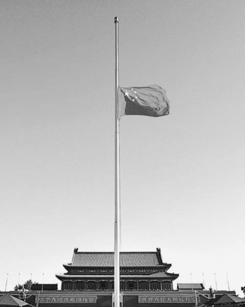 下图:8月15日,北京天安门广场降下半旗,向甘肃舟曲特大山洪泥石流遇难同胞志哀。新华社记者 任正来摄