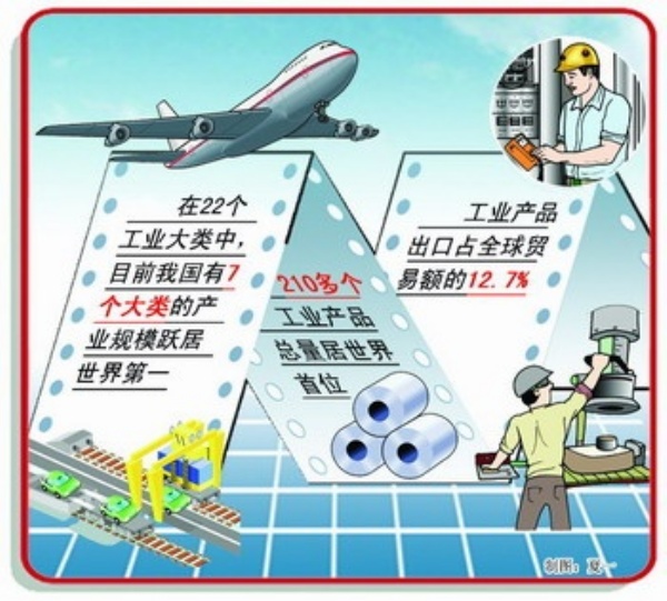 1000兆瓦超超临界火电机组自控系统通过国产化验收,当今世界单机容量最大的三峡工程70万千瓦水电机组实现自主研制,我国自行研制的世界最长72米臂架混凝土输送泵车、最大直径11.22米盾构机、超重型双立柱数控落地镗铣床、超大型露天矿用挖掘机、1000兆瓦超超临界风冷汽轮机、3兆瓦海洋风电设备等一大批产品达到或领先世界水平……