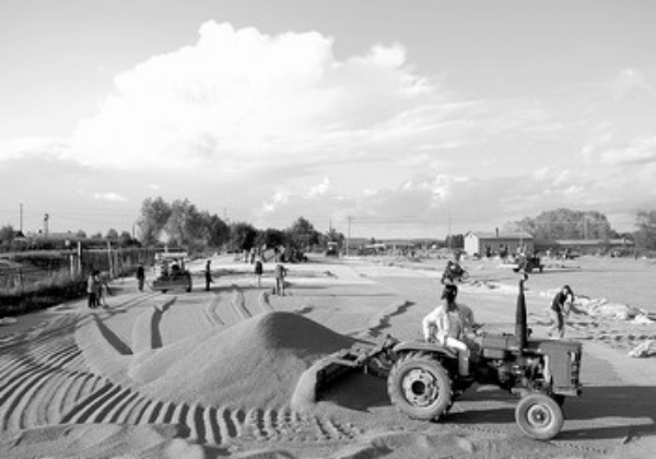 8月16日,黑龙江省红色边疆农场50连的职工在晾晒新麦。 当日,在黑龙江省红色边疆农场50连麦场上,部分职工及家属赶着晴天晾晒今年的新麦。该队所属家庭农场今年种植的1800余亩小麦获得平均亩产约200公斤的收成。 新华社记者 周 确摄