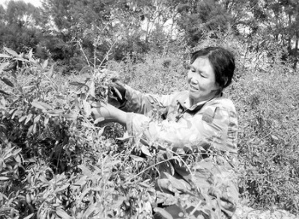 自2008年开始,青海格尔木市利用丰富的光热条件和特殊的自然环境,引导农民群众种植枸杞增收。图为农民在采摘枸杞。 本报记者 马玉宏摄