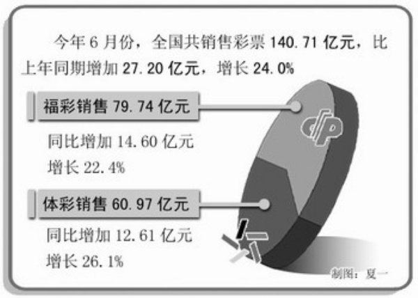 六月份我国彩票销售同比增长24%