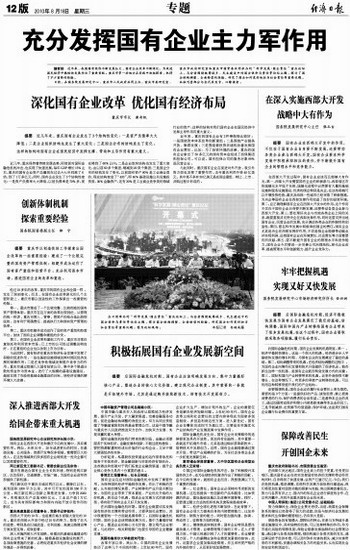 重庆有着适合国有企业生长的环境,特别是两江新区,区位很好,交通便捷,市场广阔,为国有企业进军西部提供了新机遇。