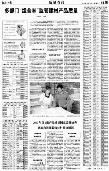 2010年第2批产品质量国家监督抽查建筑和装饰装修材料抽查概况