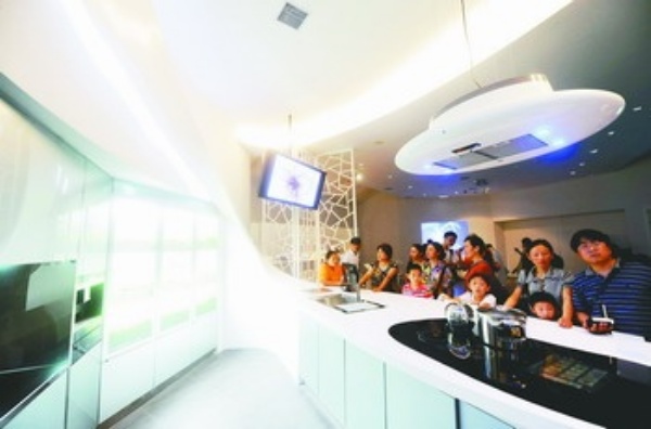 城市未来馆“智能家居”展厅的展品都与生活密切相关:从冰箱里取出食品,甚至都不需要打开冰箱门,安装在冰箱外部的显示屏直接就向人们提供存取食物、网上订购等“一条龙”服务。智能冰箱还可以自动监控食物是否过期,协助人们清除变质食品。据介绍,这些家居智能产品大多数已经研发成功,规模生产后即可投入应用。