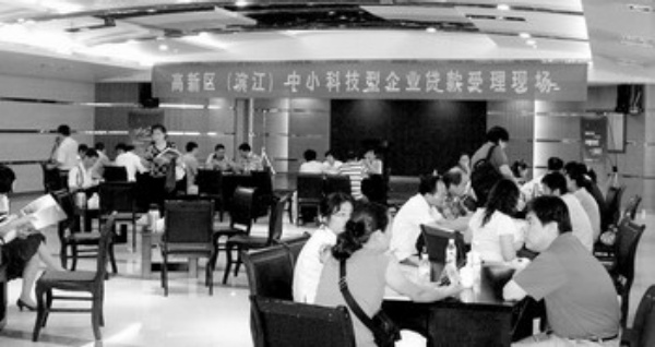 2009年9月10日,在杭州高新区天堂软件园五楼多功能厅,高新区行政服务中心、高新担保公司、金融机构代表济济一堂。在这里,一批科技型中小企业带着“订单”参会,当场签订了20余份贷款意向书。