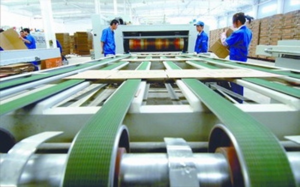 图7:果品产业的崛起,带动了平凉市纸箱包装业的快速发展,目前静宁县拥有大中型纸箱生产企业11家,年生产能力达1.6亿平方米,纸箱包装业成为地方工业经济的主力军。图为静宁县鼎元纸制品有限公司纸箱生产线。