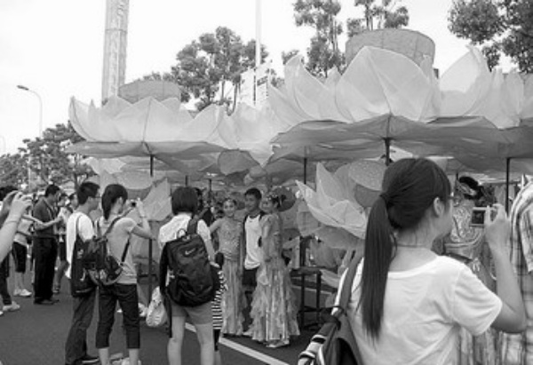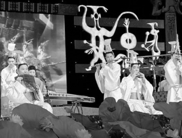 图1:一组组清脆悠扬的编钟古乐演奏,让参观世博会城市足迹馆的观众听得如痴如醉。
