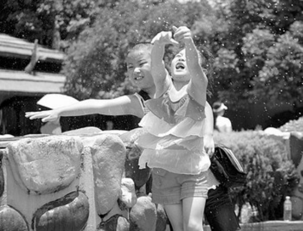 连续的高温让人很难找到一个清凉的去处。然而,北京市蓝色港湾广场却吸引了不少市民。蓝色港湾三面环水又紧邻朝阳公园,成为都市里难得的低温“绿岛”。半开放的高街,天幕制冷系统释放从上而下的冷气,喷泉和跳跳泉带来的丝丝清凉成为小朋友的避暑胜地,不少周边市民都愿意带孩子来纳凉。