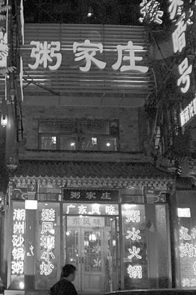 图3:天气热了,主打夜间餐饮的饮食街更热闹了,北京簋街的一家粥店夜间的生意很红火。