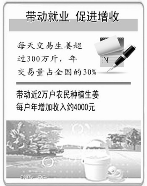 市场的建立使生姜的交易量大大提高,姜农可以放心地种姜,不用担心姜不好卖、卖不出好价钱。据了解,仁禾生姜市场可带动当地近2万户农民从事生姜种植,每户年增加收入约4000元,辐射区内种姜农民全年总增收近3亿元。下一步这里将带动周边地区35万亩生姜进行标准化生产,促进产业发展和升级,真正做到农业增效,农民增收。