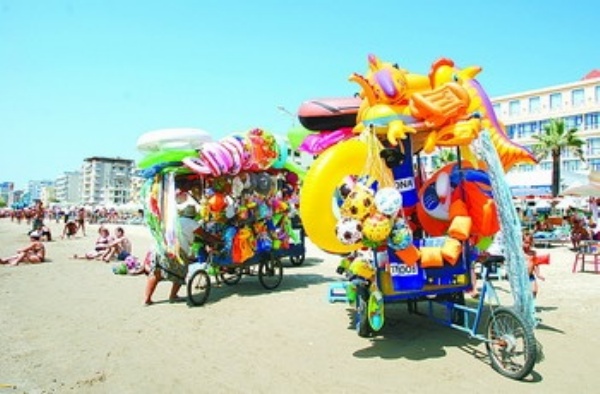 阿尔巴尼亚大力发展旅游业,以旅游带动经济发展。图为阿尔巴尼亚著名的海港城市杜拉斯的海滨浴场,人流如潮,带动了餐饮、商业和服务行业的发展。 本报记者 邓克堂摄