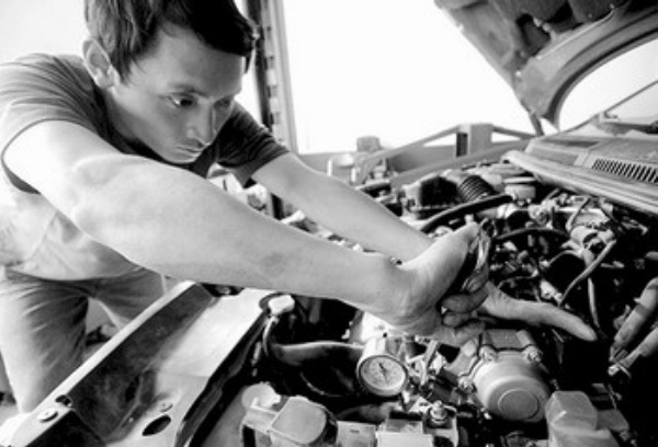 | 在银川市某天然气汽车改装厂,一位工作人员在一辆汽车上安装天然气气瓶的指示表。由于天然气较石油价格低,而且更为清洁,近年来各地掀起了改用天然气作为汽车燃料的热潮。据了解,目前银川市有13家取得政府许可的车用气瓶改装公司,改装过的社会车辆近1万辆。 新华社记者 彭昭之摄 |