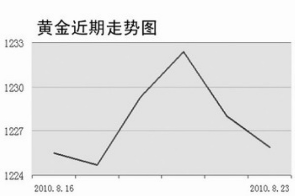 7月份,在欧洲主权债务危机突然出现转机的背景下,全球金价应声下跌,一度跌破了1160美元/盎司,创出3个月内的新低。但进入8月份,国际金价不但收复每盎司1200美元大关,而且连续上涨。上周国际金价冲高至每盎司1230美元,创七周新高。最终,上周五伦敦金价终盘报收于1228.03美元/盎司。