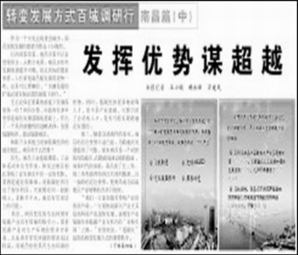 自6月7日起,本报连续刊出“转变发展方式百城调研行”系列报道,本报记者深入到连云港、沧州、大连、宁波、珠海、防城港、威海、南昌、青岛等具有代表性的城市进行实地调研,报道反映了各地在转变经济发展方式过程中的新思路和新做法,并总结了来自实践中的大量鲜活经验及体会。该系列报道推出后,引起社会各界广泛关注,不少热心读者来信对报道予以肯定,认为其经验可供借鉴。