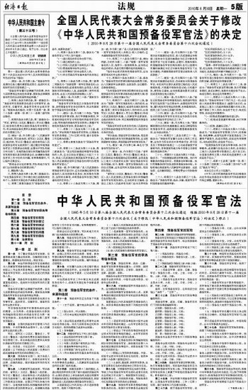 全国人民代表大会常务委员会关于修改《中华人民共和国预备役军官法》的决定
