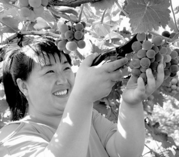 一位种植户正在采摘成熟的葡萄。近年来,通辽市科尔沁区把沙地葡萄作为建设新农村的特色支撑产业来抓,今年又新增沙地葡萄1.1万亩,总种植面积达到7.1万亩。 本报记者 罗 霄 通讯员 邵学东摄影报道