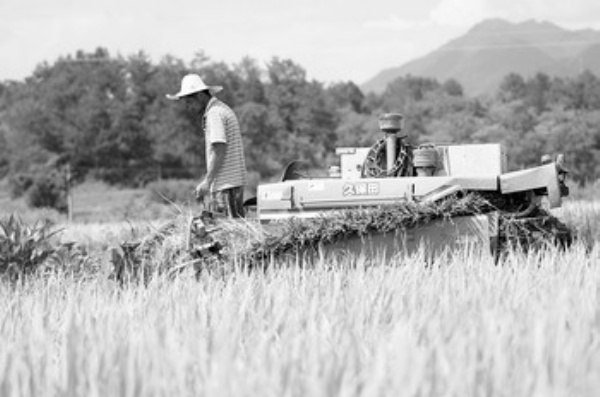 9月1日,来自江苏的农机手驾着联合收割机在黄山市万安镇红心村稻田里作业。目前,黄山市60万亩中稻已陆续成熟,江苏、浙江、山东等省及皖东等地的数百名收割机手纷纷奔赴黄山收割水稻。