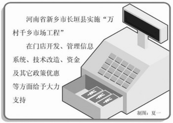 “‘万村千乡市场工程’实行统一配货、集中采购等现代经营方式,建立新型农村市场流通网络,对商品质量实行源头控制,将质优价廉的商品带到农村,改善了农村消费环境,扩大了农村消费,方便了农民生活。”长垣县商务局局长刘国富道出了“万村千乡市场工程”在服务“三农”中发挥的作用。