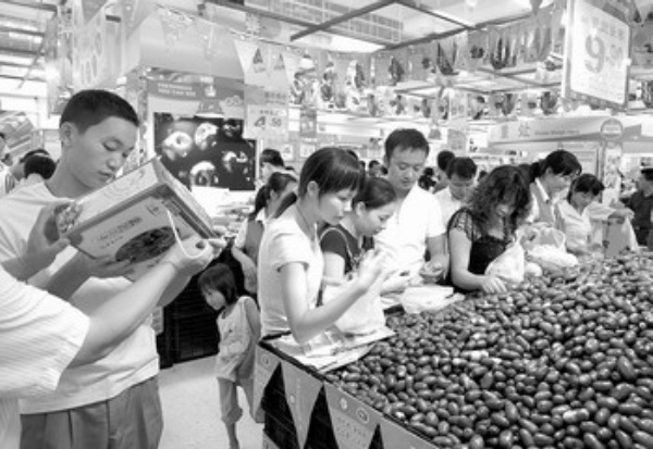 华润万家何以青睐灵武长枣?蓝屹说,“我们看好其两点。其一,看好灵武长枣的品质优势。灵武长枣果实长椭圆形,口感酥脆爽口,甜中带酸,营养丰富,2008年2月被批准为中国名牌农产品。其二,看好灵武长枣的市场潜力优势。由于灵武市重视品牌销售宣传,几年来先后在宁夏、深圳、上海、天津等地成功举办灵武长枣节,灵武长枣品质得到越来越多人的认可,产品远销上海、天津、深圳等10多个省市,部分果品还出口俄罗斯等国家。目前灵武长枣种植面积达到12万亩,预计今年产量将达到860万公斤。