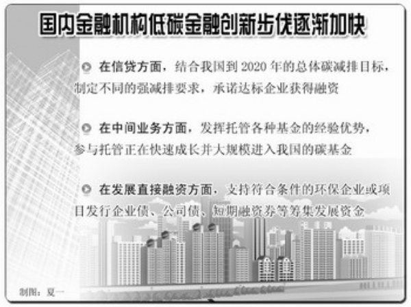 在“低碳”、“环保”成为流行词语时,低碳经济也进入了金融从业者的视野,商业银行通过积极参与碳排放权现货及期货市场交易、创新低碳金融产品等模式,逐渐找到了发展“低碳金融”的新渠道。