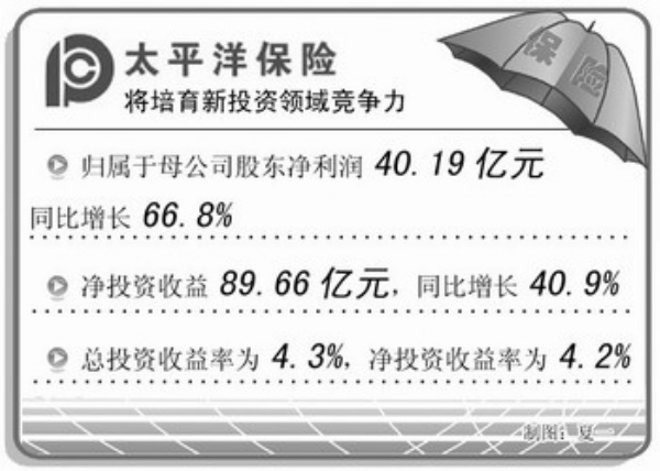 中国太保2010年半年报显示,上半年中国太保归属于母公司股东净利润40.19亿元。得益于固定资产投资、封闭式基金大笔分红,该公司上半年净投资收益89.66亿元,同比增长40.9%。