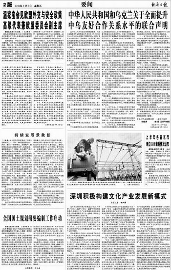 中华人民共和国和乌克兰关于全面提升中乌友好合作关系水平的联合声明