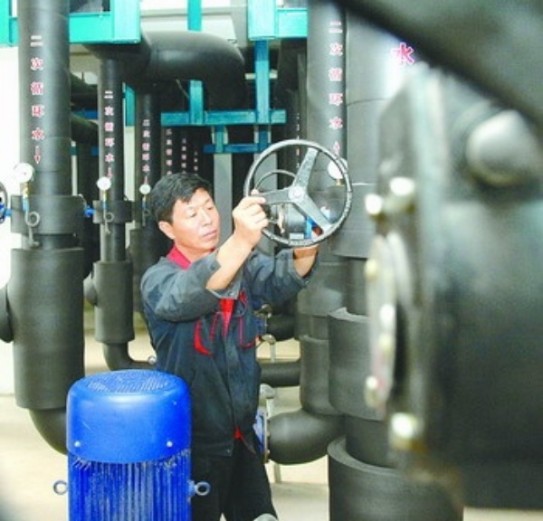 9月3日,辽宁省大连市獐子岛恒有源能源公司工作人员正在检修液态冷热源环境系统设备,该套设备利用海水温度变化所产生的能量为居民供冷供暖。 本报记者 李树贵摄
