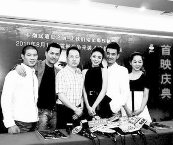 上图:国产大片《喋血孤城》的演职人员在首映庆典上。