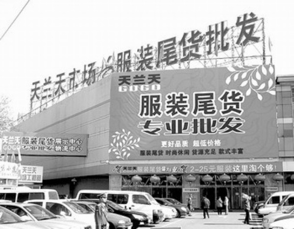 客流大,商机多。在天兰天经营服装生意,刘女士主要以批发的形式进行销售,“各种档次的服装都有,价格比一般商场要便宜一半甚至更多,以中低价位为主。消费群体年轻人居多,70%都是回头客,周末时候客流量最大,生意都忙不过来呢。”刘女士认为,低价不是尾货市场的主要竞争优势,质量保证才是吸引消费者的首要因素。