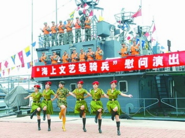 驻守在山东长山岛的某海防团竹山营是渤海最前哨,驻守官兵的工作和生活条件十分艰苦。针对这一特点,部队成立了业余宣传队“海上文艺轻骑兵”,经常下海岛慰问官兵。图为9月8日,宣传队正在长山岛表演自己编排的节目,受到战士们欢迎。 本报记者 张 欣摄