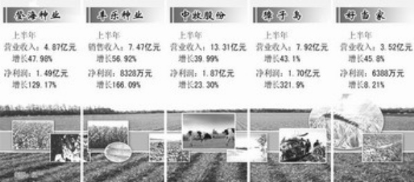 登海种业2010年半年报显示,公司上半年营业收入为4.87亿元,较去年同期增长1.58亿元,增长达到47.98%;营业利润和归属母公司所有者的净利润分别为2.28亿元和1.49亿元,分别较去年同期上涨90.83%和129.17%,基本每股收益为0.84元。