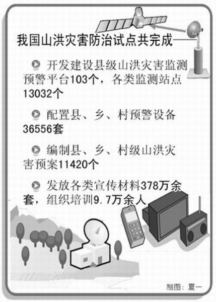 ○ 2009年4月,水利部组织在29个省(区、市)和新疆生产建设兵团的103个县开展山洪灾害防治非工程措施试点建设,财政部下达中央补助资金2亿元。