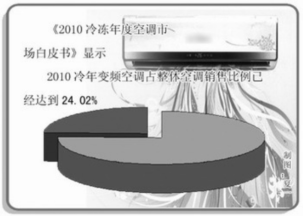 2010冷年,高效节能空调占空调整体销售规模的比例进一步加大,尤其是变频空调放量增长,销售占比已接近四分之一,成为市场最大亮点。