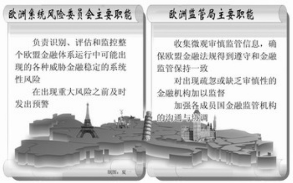 欧盟新的金融监管机制将由负责宏观层面监管的欧洲系统风险委员会和负责微观层面监管的欧洲监管局两大部分组成。