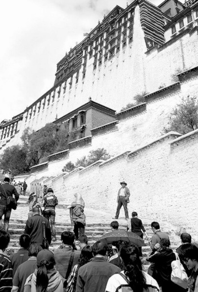 9月8日,游客在参观布达拉宫。今年1至8月,西藏累计接待国内外游客5092486人次,比上年同期增长24.5%,实现旅游总收入444361万元,增长37.3%。 新华社记者 普布扎西摄