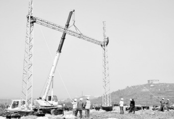 9月14日,在辽宁大连市境内的哈大客运专线普兰店电气化铁路牵引变电所,中铁电气化局西安电化公司的建设者正在加紧安装电气化设备。哈大客运专线纵贯东北三省,线路计划在2011年底达到开通运营条件。 倪树斌摄 (新华社发)