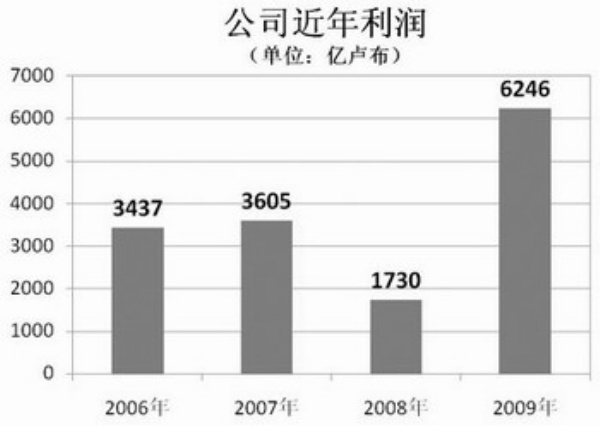 经历国际金融危机后,俄罗斯天然气公司2009年获得净利润6246亿卢布(约合246亿美元),与2008年相比激增了2.6倍。在今年的美国财富杂志世界500强企业排名榜中,该公司按年度收入额排名世界第50位,按全年净利润额名列世界榜首,成为全球获利最丰厚的企业。俄罗斯天然气公司走出一片新天地的做法,值得关注。