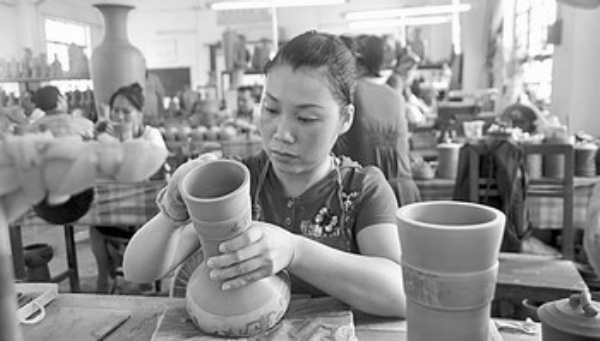 为了突破产能局限,近年来坭兴陶生产引进了机械化生产。采用压坯和灌浆两种机械化生产方式,坭兴陶生产能力得到了极大地提高。