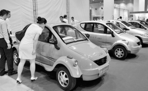 9月17日,参观者在无锡举行的新能源大会暨太阳能展览会上观看电动汽车。 当日,主题为“低碳经济与新能源”的第二届中国(无锡)新能源大会暨太阳能展览会在无锡开幕,来自海内外的百余家新能源企业和机构与会,集中展示了先进的新能源产业新技术、新产品、新装备。 潘正光摄 (新华社发)