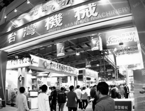 福建晋江近年来以“鞋博会”为载体,积极推进海峡两岸鞋类企业的合作。图为在今年“鞋博会”期间前来参展的台湾制鞋企业馆。 石 伟文 施清凉摄影