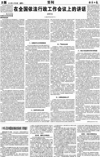 在全国依法行政工作会议上的讲话