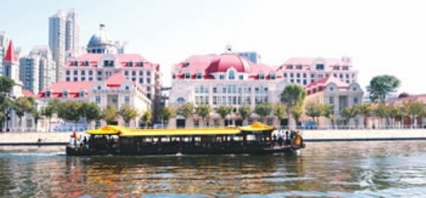 9月23日,一艘中式海河游船经过整修一新的百年西式建筑。金秋时节,经过不断改造和市容环境建设提升后的海河两岸更显亮丽。中秋期间,乘海河游船赏两岸美景成为许多游客的选择。 新华社记者 刘海峰摄