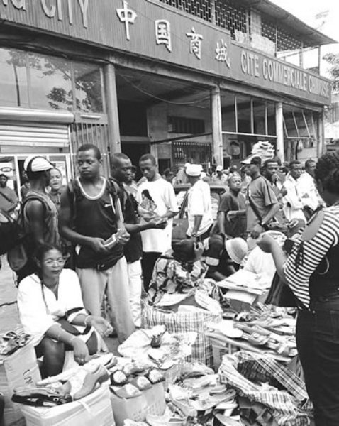 图为在喀麦隆杜阿拉的中国商城,当地小贩正在售卖中国商品。 (新华社发)